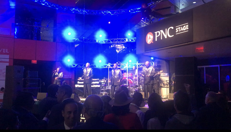 Slideshow from left: watching The Spinners celebrate their induction into the Rock & Roll Hall of Fame, admiring one of Rock & Roll's early influences Les Paul, listening to thought leaders and school founders during a panel discussion, celebrating with school founders and education leaders!